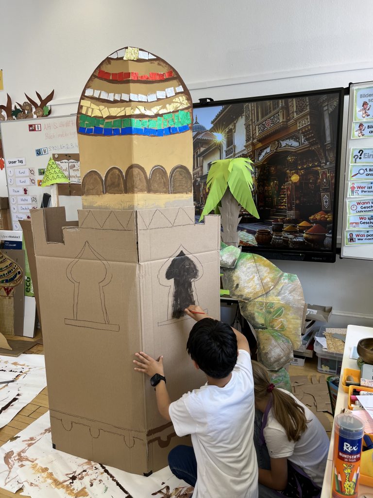 Die Kinder wählten die Motive der Blumentöpfe inspiriert von ihrer Heimat, ihren Interessen und ihrer Vielfalt selbst aus: Darunter sind Darstellungen der Natur im Laufe der vier Jahreszeiten, der Burgruine samt Ebersteinburger Wappen, Themen wie Umwelt- und Klimaschutz sowie das friedliche Zusammenleben verschiedener Kulturen, symbolisiert durch die Flaggen der Herkunftsländer unserer Schulkinder. So ist ein farbenfrohes Projekt entstanden, das nicht nur den öffentlichen Raum verschönert, sondern auch zeigt, welche Themen den Kindern am Herzen liegen.