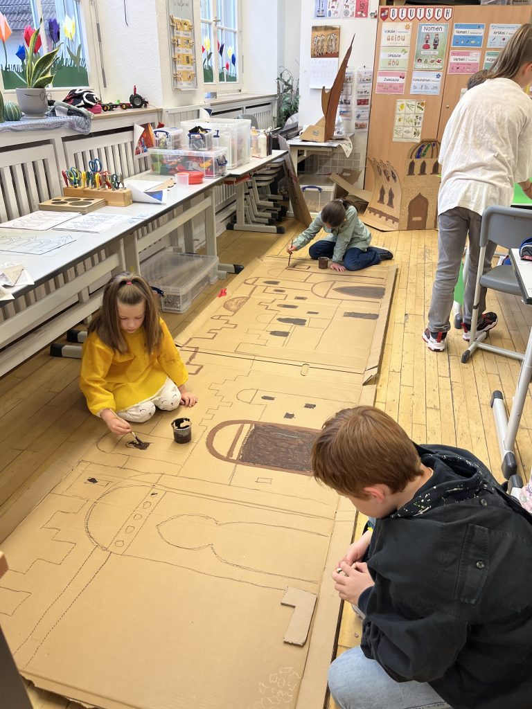 Hintergrund des ersten Projekts war eine ernste Beobachtung: Seit Beginn der Baustelle auf der Hauptstraße verlagert sich der Verkehr verstärkt in kleinere Seitenstraßen – dort wird jedoch oft zu schnell gefahren! Besonders an engen oder unübersichtlichen Stellen ohne Gehweg wird der Schulweg so zur Gefahr. Viele Kinder nahmen diese Entwicklung aufmerksam wahr und stellten sich die Frage: Was können wir selbst tun, um auf die gefährliche Situation aufmerksam zu machen?